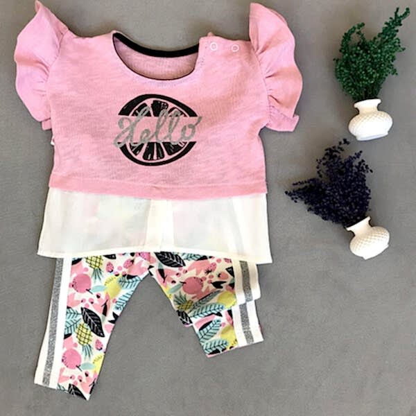 Kız Bebek Çiçek Desenli Taytlı Takım